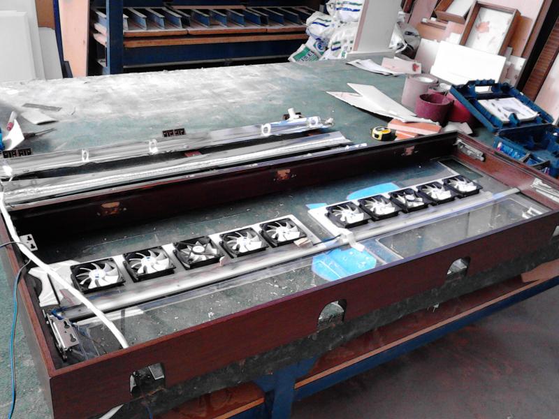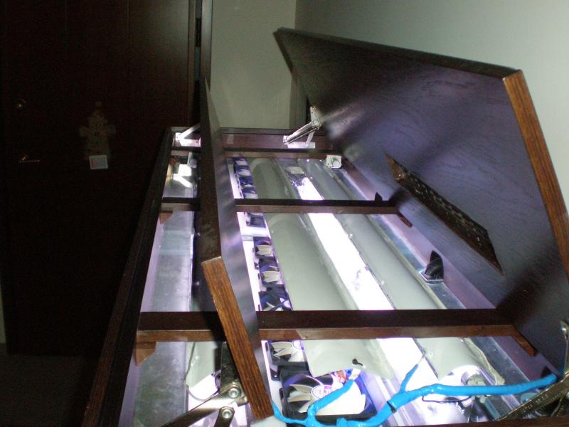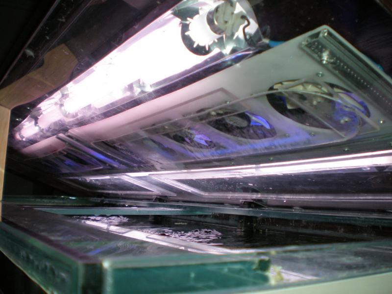 τα ανεμιστηρακια τοποθετηθηκαν στο κεντρο,οπου ειναι η λεντοταινιες. βιδωθηκανε σε ενα πλαισιο αλουμηνιου,και στο κατω σημειο απο τα αμεμιστηρακια θα καληβετε με πλεξικλας,για τον χειμωνα που δεν θα δουλευουνε,για θεμα υγρασιας. ακολουθουνε και μερικες φωτογραφιες οπως ειναι τωρα το ενυδρειο. και ενα ευχαριστω για τον snacepanos για τα υπεροχα φυτα.που μου εδωσε τελευταια. |