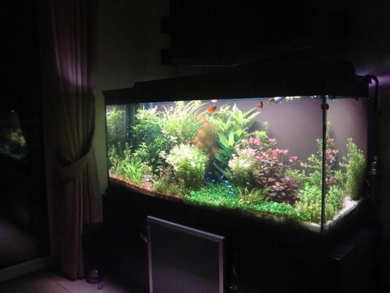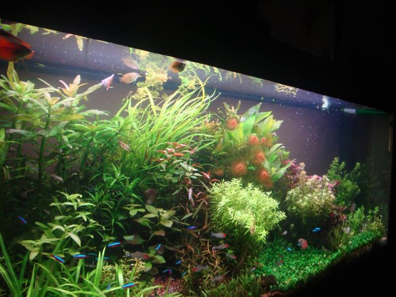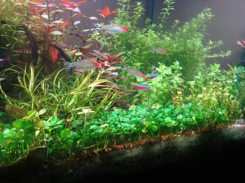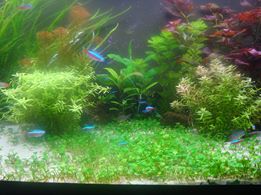 Ενυδρειο:140x50x70 ΕΝΑΡΞΗ ΛΕΙΤΟΥΡΓΙΑΣ: 1-11-2013 Ψαρια: 60 Cardinal tetra , 12 Rummy-nose tetra , Ancistrus sp.3 ,12 corydoras sterbai Αλλα ειδη: 6 Amano , 15 Red cherry , 1 Bamboo shrimp , 4 Apple snails , 10-15 Helena Anentome Φυτα: Bacopa Monnieri II , Bacopa Caroliniana Cabomba Caroliniana Hygrophila Lacustris Hygrophila Difformis Ludwigia Mullerti Myriophillum Mattogrossense red Nesaea Crassicaulis Polygonum Sao Paolo Rotala Green Marsilea Exarata Limnophila Sessiliflora Ludwigia Repens Rubin Ammania Gracilis Ammania Bonsai Ludwigia arcuata Rotala Rotundifolia Heteranthera zosterifolia (Stargrass) Juncus repens Nymphaea lotus (zenkeri) ΠΑΡΑΜΕΤΡΟΙ ΝΕΡΟΥ: θερμοκρασία : 26 c pH: 6.8 ΚΗ: 6 NH3/NH4: 0 ppm NO2: 0 ppm NO3: 5 ppm PO4: 0-0,5 ρουτινες συντηρησης αλλαγες νερου:30%-40% καθε εβδομαδα με νερό βρύσης λιπάσματα : seachem , seachem poatasium ,seachem iron , seachem phosforus , seachem tab καθημερινά όσο νομίζω πως χρειάζεται Φιλτρα : EHEIM professionel 3 electronic 2078 , sunsun 1200l/h θερμανση : Eheim/Jager 300 wat Φωτισμος: φωτοπερίοδος 10 ώρες με : 1 silvania croulux t5 54 wat , 1 silvania deyliht t5 54wat 10 ωρες 3 Aqua Medic aqualine T5 Plant Grow 54 wat 5,5 ωρες (θα κάνω σταδιακό ανέβασμα μέχρι 7 ώρες ενδιάμεσα ) Βυθος: λευκη χαλαζιακη άμμος 0,1-0,5 Παροχη CO2:6kg μπουκάλα περιπου 240φισαλιδες το λεπτο ανοίγει με το άνοιγμα των φώτων και κλείνει μια ώρα πριν κλείσουν τα φώτα και 2kg μπουκάλα με σταθερές 60 σταγόνες το λεπτό για 24 ώρες η φωτογραφία είναι από από 12-12-13 μετά το πρώτο κλάδεμα |