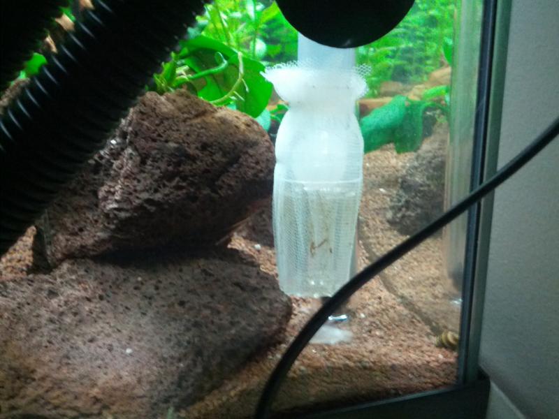 Όγκος:63 λιτρα - 50 καθαρα Κατηγορία:Κοινωνικό - Φυτεμένο Φυτά:limnophilla sessiflora, bacopa caroliana, hygrophilla diformis, rotala rotundifolia, hygrophilla polysperma rosandevig,moss balls, anubias nana, microsorum crispy leaves( θα προστεθει σιγουρα versicularia moss ) Ψάρια / ¶λλα είδη:20 γαριδουλες red cherry,4 γαριδες amano , 6 σαλιγκαρια clea helena Διακοσμητικά υλικά:πετρες λαβας, ριζα redwood υποστρωμα: jbl manado Φόντο: ακομα τιποτα Φωτισμός: μια λαμπα 15w ,grolux life glo , 6700kelvin, 960lumen Διάρκεια φωτισμού: 7ωρες και 45 λεπτα και ανεβαινω μεχρι να φτασω τις 8 Φιλτράρισμα: fluval 106 εξωτερικο , 4 σφουγγαρια ,2 καλαθακια φουλ ελαφροπετρα υαλοβαμβακα στο τελος Θερμοστάτης: 150w eheim jager Λίπανση: μια φορα την εβδομαδα 1.5ml seachem flourish γενικο λιπασμα ιχνοστοιχια, seachem flourish potassium μια φορα την εβδομαδα 2ml Παροχή CO2: οχι Παράμετροι: pH: 7 Γενική σκληρότητα (GH): Ανθρακική σκληρότητα (ΚΗ): Αμμωνία (ΝΗ3): 0 Νιτρώδη (ΝΟ2): 0 Νιτρικά (ΝΟ3): 10-15 (συνεχιζω αλλαγες νερου να πεσουν και αλλο) Αλλαγές νερού: Θερμοκρασία: 24.5 - 25.5C ¶λλες πληροφορίες: τρεχει περιπου 1 μηνα στρωμενο με μπολι και τροφη...ειχα σκοπο να βαλω rasboras galaxy ενα κοπαδι των 10 αλλα εβαλα γαριδες πρωτα και προς το παρον μαρεσει πιο πολυ με αυτες μεσα και θα ηθελα να βαλω και αλλα ειδη.. μερικες φωτο: http://i61.tinypic.com/x10p3o.jpg http://i62.tinypic.com/5lqh74.jpg http://i62.tinypic.com/1zfdj8.jpg http://i58.tinypic.com/25jwg74.jpg http://i57.tinypic.com/107qex1.jpg πειτε μου αποψεις διορθωσεις..και επισης να ρωτησω: 1.για τις γαριδες να κανω και αλλη αλλαγη νερου να πεσουν μαι αλλο τα νιτρικα; και ποσο % να ειναι η αλλαγη; 2.τι τροφες να παρω για τις γαριδες σε ποικιλια δλδ 2-3 και αν γινεται και σε συνδυασμο με τα clea helena αν χρειαστει να τσιμπησουν μη λιμοκτονησουν τα κακομοιρα 3.ποια ειναι η προτεινομενη ροη του φιλτρου μου και πρεπει να ντυσω την εισοδο του φιλτρου με.καποιο τουλι μη ρουφηξει γαριδες η το γονο τους; 4.οσον αφορα τα λιπασματα καπου διαβασα οτι δε κανει να προσθετουμε γιατι κανουν κακο στις γαριδες ..ισχυει;; ευχαριστω πολυ παιδια |