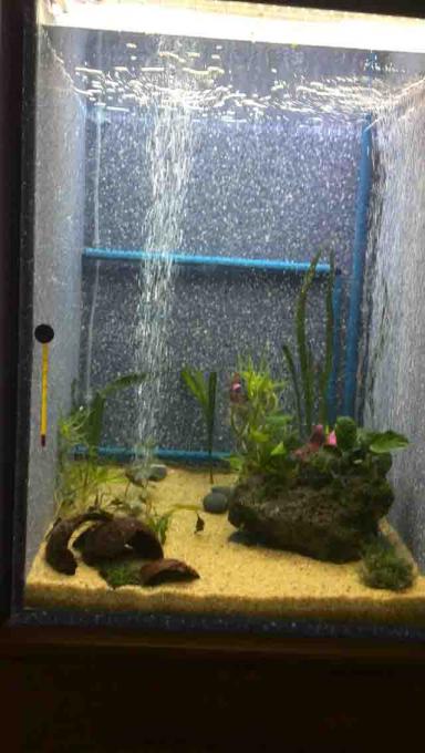 Το ενυδρείο έχει διαστάσεις 51x53x70cm και θα φιλοξενήσει ολα τα θυληκά platies που έχουμε.Όταν τα χαρίσουμε όλα (υπάρχει αγγελία), λέμε να βάλουμε 10neontetras και 10 αρλεκίνους.