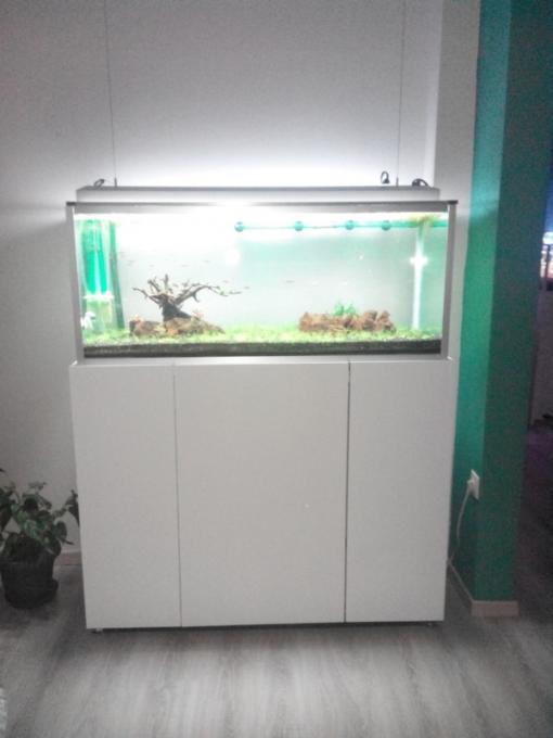 Το DIY κακα τα ψεμματα για να σουλουπωθει και να γινει οπτικα σαν ενα εργοστασιακο θα παει πολυ ψιλα. Βεβαια καποιους δεν τους απασχολει η εμφανηση και επιλεγουν να εχουν μια "γυαλα" κυριολεκτικα χωρις καπακια και με κρεμαστα φωτιστικα η' λαμπες. Σαν κατασκευη ειναι πολυ καλυτερη απο οτι περιμενα και τα φωτιστικα του σταθερα χωρις να παιζουν μπρος πισω σαν τα Juwel. To αρνητικο που βρηκα ειναι οτι το εργοστασιακο επιπλο εχει στενα ντουλαπια με αποτελεσμα να μη χωρανε τα 2080 και fx-6. Eκει η' το αγοραζεις χωρις βαση και φτοιαχνεις μια απο κιλοδοκο να εχεις απλα η' περιοριζεσαι στις επιλογες των φιλτρων με 30cm φαρδος καδου οπως πχ JBL e1901. |