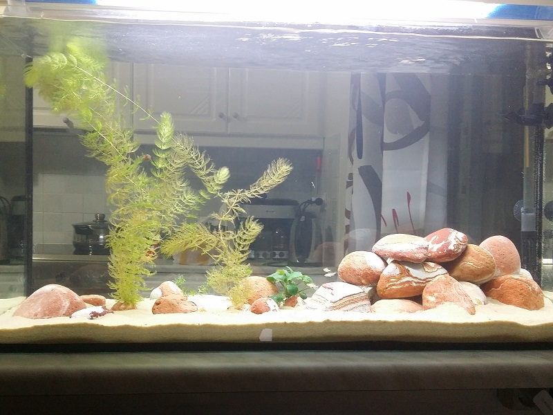 Ωραία το ενυδρείο σου,και από στήσιμο και από ψάρια.Βάλε όμως και κάνα κέλυφος ίσως χρειαστεί!!!