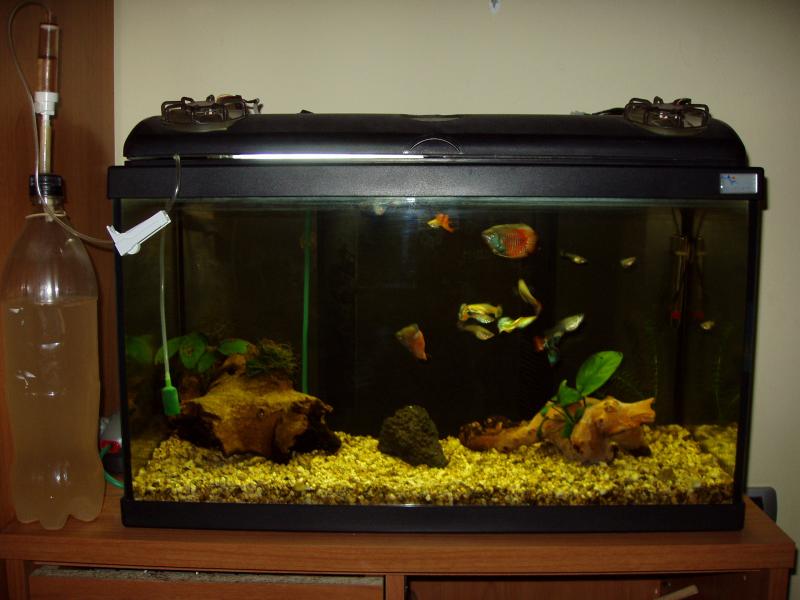 τι εγινε με τη συνθεση των ψαριων σου?? ελπιζω να εχει φυγει ο μονομαχος που πρεπει να ειναι μονος .. ο gibiceps που γινεται θηριο και δεν κανει για το ενυδρειο σου..να εχεις αποφασισει αν κρατησεις ζωοτοκα οπως τα μολυ που θελουν σκληρο νερο και αλατακι η αν θα κρατησεις ψαρια που θελουν μαλακο νερο οπως τα γκουραμι... στη δευτερη περιπτωση θα πρεπει να αντικαταστασεις το ενα αρσενικο colisa lalia με θηλυκο...επισης πρεπει να περιορισεις τον αριθμο των ψαριων σου για αυτα τα λιτρα...τα ψαρια δε χωρανε και αυτο φανηκε και απο το γεγονος πως δεν επαρκουσε το οξυγονο και χρειαστηκε να βαλεις αεραντλια... επισης να εχεις μια μικρη ποικιλια τροφων και καλο θα ηταν καμια κατεψυγμενη η αποξηραμενη και οχι μονο μια...φυσικα αναλογα και τα ειδη που θα κρατησεις θα διαβασεις και τι τροφη θελουν...δεν ειναι μια και μονο γενικη τροφη για ολα τα ψαρια... οσο για φυτα..θα πρεπει να αναβαθμισεις τον φωτισμο σου με μια ακομη τουλαχιστον 15αρα λαμπα και να κανεις ενα diy διοξειδιο και να ψαξεις το θεμα των λιπασματων...αν αποφασισεις να εχεις μονο ευκολα φυτα (διαβασε το υπομνημα στην κατηγορια φυτεμενα) το φως αρκει...παρε και ενα γενικο λιπασμα και με το διοξειδιο θα εισαι οκ... να κανεις μετρησεις και να μην αφηνεις τα πραγματα στην τυχη τους...και αφοσον εχεις στρωμενο φιλτρο δε χρειαζεται στις αλλαγες να ριχνεις βακτηρια...το ενυδρειο σου εχει πολλες δυνατοτητες αλλα πρεπει να διαβασεις αρκετα εδω μεσα και στο www.tsamisaquarium.gr και να εχεις υπομονη... καλη επιτυχια!!! υ.γ. και καλο διαβασμα!!! ------------------------- Παράθεση:
