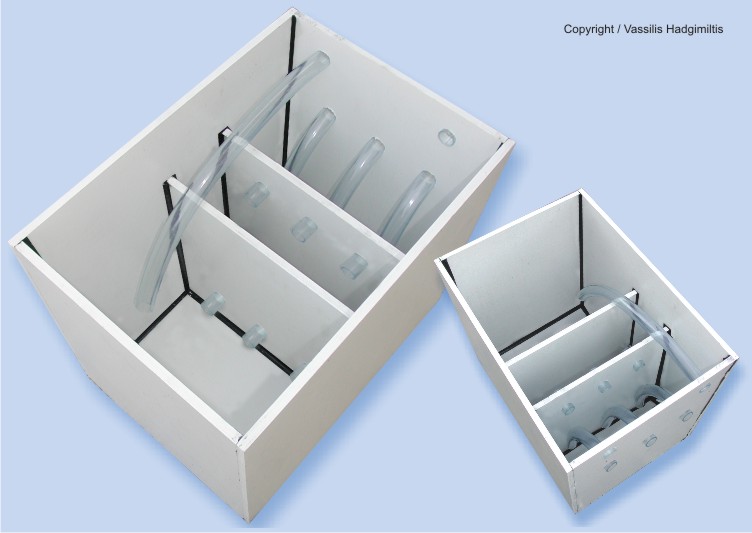 Απλά δύο λόγια για το φίλτρο που πρόκειται να φτιάξεις. Ουδέποτε μίλησα για μη λειτουργική χρήση μιας αντλίας εκτός νερού και ουδέποτε έχω μιλήσει για φίλτρανση με τον τρόπο που τον παρουσιάζεις, πράγματα που εμένα προσωπικά με βρίσκουν σύμφωνο. Αυτά έχουν να κάνουν και με τους χίλιους τρόπους που μπορεί να φτιαχτεί κάτι σε μια λίμνη και βεβαίως δεν έχει τίποτε να κάνει με τους σωστούς κανόνες διατήρησης, απλά την υποδομή και υποστήριξη. Επίσης, ουδέποτε έχω μιλήσει εναντίων των έτοιμων φίλτρων της αγοράς, φτάνει να είναι αξιόπιστα και να πληρούν κάποιες προυποθέσεις. Δόξα τον Θεό, το διαδίκτυο είναι γεμάτο ονόματα εταιρειών που ευτυχώς εύκολα μπορείτε να διακρίνετε ποιότητα και αξιοπιστία. Έναν νέο οπαδό της λίμνης μάλιστα, θα τον προέτρεπα να πάει απ'ευθείας στην έτοιμη λήση μέχρι να είναι έτοιμος να δημιουργήσει και να χειριστεί μια λήση DIY. Αντιλαμβάνεστε φίλοι, ότι από εδώ και εμπρός το έργο μου δεν θα είναι τόσο εύκολο, γιατί θα πρέπει σιγά-σιγά με τον Σωκράτη και τα άλλα παιδιά να διαμορφώσουμε την κατηγορία με τις τελευταίες προδιαγραφές. Θα εκπλαγείτε πόσο έχουν αλλάξει κάποια πράγματα τώρα σε σχέση πάντα με υλικό και βιβλιογραφία πριν 10 χρονών, όπου και ξεκινούσα δειλά-δειλά τα τις λίμνης. ΤΟ ΚΟΙ σαν ΡΕΤ είναι κάτι σαν θρύλος. Δεν μπορείτε να φανταστείτε πως μιλάνε κάποιοι λιμνόφιλοι για τα 8-10 ψάρια τους και για τη σχέση τους με αυτά, που καμία απολύτως διαφορά δεν έχει η συμπεριφορά τους στα ΚΟΙ απ' ότι στα σκυλιά τους. Μάλιστα 8-10 ΚΟΙ μόνο σε λίμνες άνω των 10.000-15,000 λίτρων. Η σχολή αυτή που εν μέρει θα υιοθετήσω και εγώ στη καινούρια μου λίμνη πιστεύει ότι κάθε ενήλικο ΚΟΙ θέλει 1000 λίτρα χώρο. Αυτά όμως, για το μέλλον. Καθαρά ο κλάδος δηλώνει ότι "ο σωστός λιμνίφιλος δεν φίνεται αυτός που θάβει ένα κομμάτι λάινερ στο χώμα". Όπως ακριβώς "ο σωστός ακουαρίστας δεν είναι αυτός που έχει απλά ενυδρείο"... Ομολογώ ότι αν το αναλύσετε έχει πολλά διδάγματα. Ο σκοπός της κατηγορίας αυτής, αν θέλουμε να πάμε μπροστά πρέπει να σκανάρουμε και να πάρουμε παραδείγματα από τον παγκόσμιο παλμό, διαφορετικά, κάποιοι φίλοι που γνωρίζουν καλά το θέμα και ίσως δουν καμιά φορά τους διαλόγους μας εδω θα μας κοροϊδεύουν. ΑΠΑΙΤΩ για ακόμα μια φορά να κάνετε υπομονή γιατί υπάρχει τρομερή δουλειά να γίνει ώστε να επωφεληθούν και οι νεότεροι φίλοι που θα ενταχθούν στην κατηγορία μας στο μέλλον. Στέλνω κάποια σχεδιαγράμματα και φώτο που μπορούν να χρειαστούν για την δημιουργία σου. Να ξέρεις μόνο ότι η λίμνη 3500 λίτρων απαιτεί φίλτρανση/χώρο 350 καθαρών λίτρων. Επίστης φωτογραφίες του δικού μου φίλτρου (μικρή λίμνη) Θα κάνω παρουσίαση σύντομα πριν την ξηλώσω. Συνεχίζω όμως να επιμένω για την αντλία στο βαθύτερο σημείο