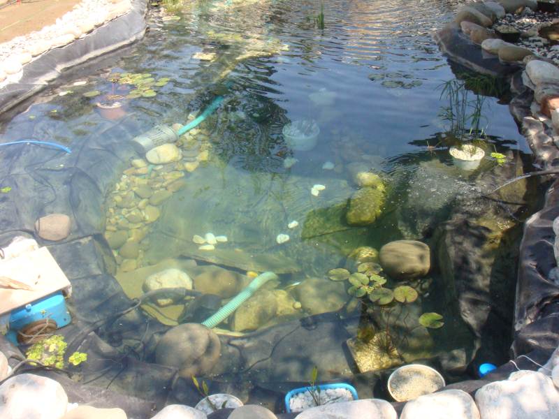 Λιπών άκου γιατί βαρέθηκα να ακούω διάφορα. Η λίμνη σου θέλει τουλάχιστον 30 χιλιάδες λίτρα κυκλοφορία νερού. Μην αντλείς το νερό από το βαθύτερο σημείο της λίμνης ….την γλύτωσες μια φορά αφού είχες μικρά ΚΟΙ. Σφουγγάρια να τα βάλεις στον κάλαθο των σκουπιδιών!.(για πέταμα) Αν σου περισσεύουν χρήματα πάρε ένα Nexus 210 η αν σου περισσεύουν περισσότερα πάρε ένα Nexus 310 Κάνε υπερχείλιση και αν μπορείς συνδύασε την με το να τραβάς νερό και από το μέσω της στάθμης του νερού. Από το μέσω της στάθμης του νερού θα έχεις συχνά μπουκώματα. Αν δεν σου περισσεύουν πάρε τον μεγαλύτερο κουβά που μπορείς να βρεις φόρτωσε τον με βιολογικό υλικό Κ1 και βάλε από κάτω από αυτό μια βάνα για να μπορείς να το αδειάζεις εύκολα. Ένα ανακάτωμα με ένα ξύλο του υλικού αφού και ανοίγοντας την βάνα καθαρίζεις το φίλτρο σε 2 λεπτά. Εννοείτε ότι όλο το νερό της λίμνης θα περνάει από Κ1. Η θολούρα είναι από το χώμα στης γλάστρες που ανακατεύουν τα ΚΟΙ. Βάλε ποιο μεγάλα χαλίκια από πάνω για να μην μπορούν τα ΚΟΙ να βάζουν την μούρη τους στο χώμα η κάνε ένα παρτέρι και βάλε μέσα τα φυτά σου και ξέχασε τα νούφαρα. Αν δεν κάνεις κάτι με της γλάστρες όποιο εξοπλισμό και να βάλεις δεν πρόκειται να καθαρίσει ποτέ! Το καθάρισμα του πυθμένα είναι όντος ένα πρόβλημα. Η ποιο οικονομική λύση είναι μια σκούπα βυθού και λίγος χρόνος από την ζωή σου. |