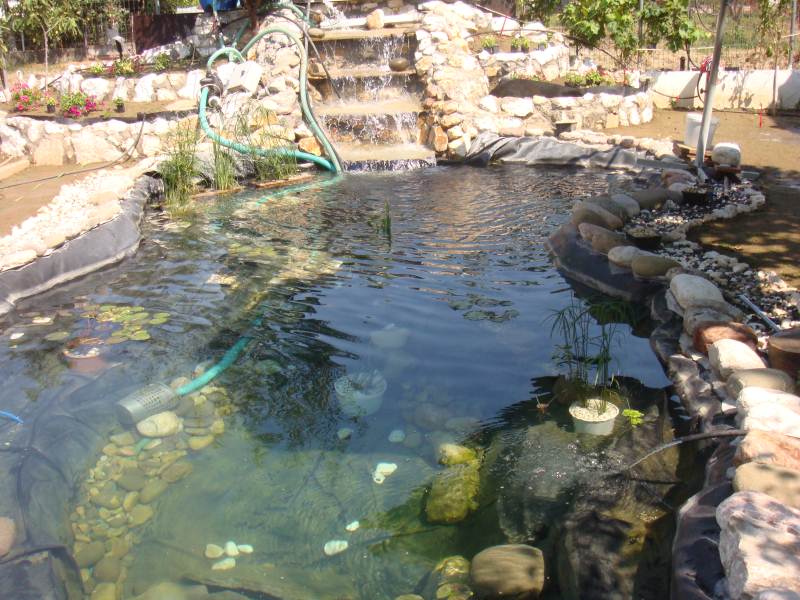 για σας στην παρατήρηση του γιάννου ότι θα σπάσει το λάστιχο και θα αδειάσει η λίμνη είχε δίκιο. έσπασε κάποιο λάστιχο έφυγε μάλλον από εκεί που ήταν συνδεμένο και άδειασε η λίμνη ευτυχώς τραβούσα νερό λίγο ποιο πάνω και σώθηκαν τα ψαρια. να ρωτήσω κάτι ενώ είναι πεντακάθαρο το νερό το πρωί μετά το μεσημέρι δεν βλέπεις τον πυθμένα ΓΙΑΤΙ? και έχω βάλει μέσα 12 koi από 5 cm έως 20cm. και βλέπω πολλά νούφαρα κομμένα τα φιλα στο skimmer το πρωί τα τρώνε?