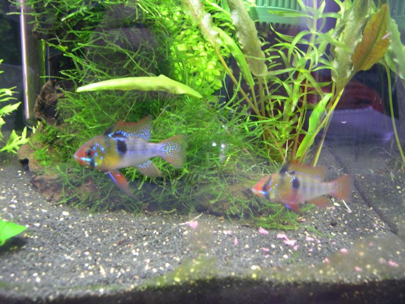 Σας παρουσιαζω τα 2 νεα μου ψαρακια. Ειναι 2 ramirezi.Ενα αρσενικο κ ενα θυληκο. Ειναι μολις 2 μερες στο ενυδρειο μου κ εχουν προσαρμοστει πληρως.Δεν φοβουνται καθολου κ μαλιστα εχουν ηδη σκαψει κ καθαρισει την πρωτη τους λακουβιτσα την οποια κ φυλανε εναλλαξ. Θα ηθελα να ευχαριστησω πολυ τον μοντερατορα μας Giorgos για την πολυτιμη βοηθεια του. Οριστε κ μερικες φωτογραφιες. Δεν ειναι κουκλια?? |