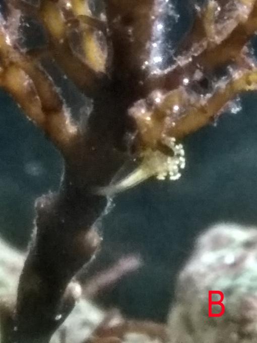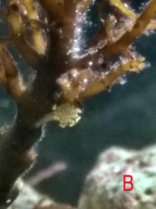Το Α είναι πολύ λεπτό με μακρύ κορμό και δεν μαζεύεται όπως οι σπειρογράφοι ή οι ανεμώνες όταν το ακουμπήσεις. Το Β μετακινείται με "ακροβατικά"... Κολλάει το "κεφάλι" του κάπου και ξεκολλάει τη βάση του, γυρίζει σαν κατακόρυφο και κολλάει ξανά τη βάση του στο επόμενο σημείο κτλ... |