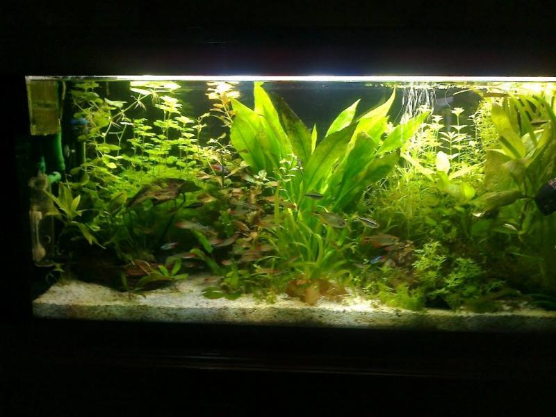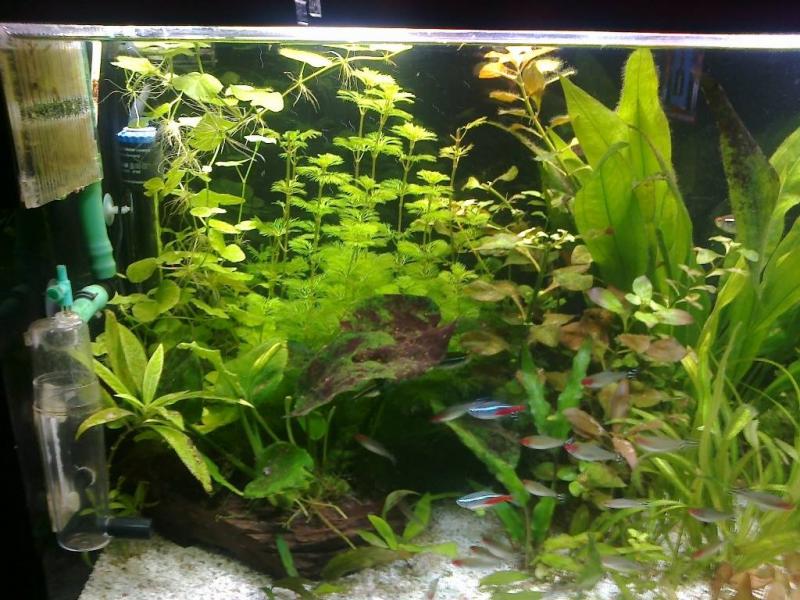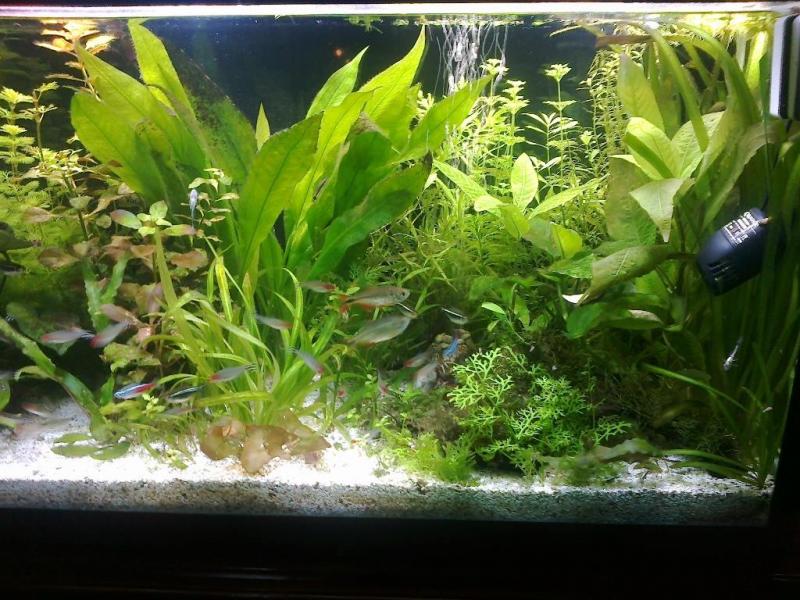 "Η ιχθυοσύνθεση έχει ως εξής, 36 Ροδόστομοι (αυτοί δεν μπόρεσαν να μετρηθούν, τόσους έχω βάλει και ελπίζω τόσοι να είναι) 4 Νεον, 6 Black Neon, 2 Buenos Aires, 2 Botia Clown, 8 Otocinclus και 10 γαρίδες Αμανο" Ξέρω πως τα Botia κάποια στιγμή πρέπει να φύγουν γιατί γίνονται μεγάλα και τα κρατάω όσο είναι μικρά, πως τα Νεον είναι μόνο 4 και πρέπει ή να φύγουν ή να αυξηθεί το κοπάδι και ίσως κάτι παρόμοιο για τα Black Neon. Το έχω αναφέρει και στην αρχή πως κάθε συμβουλή ή και παρατήρηση είναι ευπρόσδεκτη για να βελτιωθώ και εγώ αλλά και να βελτιώσω τη διατήρηση των ψαριών μου, και αυτό περιμένω από όλους σας.