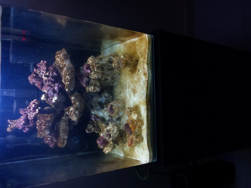 Εδώ και κάνα δυο μέρες ρίχνω και λίγη τροφή και τα βακτήρια μου κανονικά σύμφωνα με τις οδηγίες.. Το μεσημέρι ανακάλυψα ότι έχω βάλει τον χρονοδιακοπτη για τα φώτα 10 ώρες αναμενα κατά λάθος και αυτό μπορεί να γίνεται καμία βδομάδα τωρα.. Το ενυδρείο έχει πολύ άλγη.. (μάλλον για τον παραπάνω λογο) Ανεβασα και την κυκλοφορία λίγο παραπάνω.. το '' σκιμμερακι'' το βλέπω κάνει καλή οξηγωνοση, κάτι που διάβασα ότι βοηθάει στον περιορισμό της διατομικης... Εντομεταξη η άλγη έχει μεγαλώσει και έχει γίνει μικρά καφέ φουντακια , σε γενικές γραμμές το ενυδρείο είναι καφέ..! Κάτι που για να πω την αμαρτία μου δεν με χαλάει γιατί εκεί που καθόμουν με τις ώρες και έβλεπα έναν βράχο τώρα τουλάχιστον βλέπω αλγες να κουνιουνται..! Τα καινούρια φώτα δεν ήρθαν ακόμα Σάκη σε κάμια 15αρια μέρες τα περιμένω.. περιμένω και νέα απο έναν γνωστό γνωστού μήπως με βολέψει με κεσσιλ κοντρολερ μεταχειρισμενο. είπε μπορεί να έχει, βλέπουμε.. Βάζω και φώτο σχόλια και παρατηρήσεις απαραίτητες...! Δεν ξέρω γιατί μπαίνει στραβά η φώτο κάτι γίνεται με το κινητό μου να με συγχωρείτε..! |