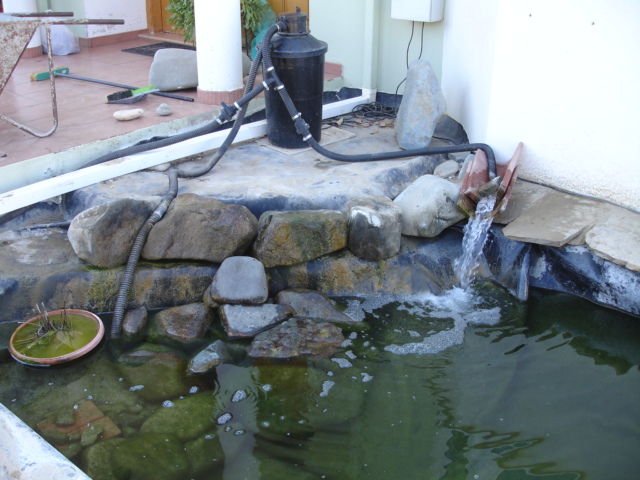Έτσι απλά για να σας προετοιμάσω για τη δική μου κατασκευή: 1. αναρρόφηση θα βρίσκεται στο βαθύτερο σημείο της λίμνης 2. μετά θα υπάρχει ένας χώρος σαν προφίλτρο για τη χοντρή ύλη λίγο έξω από τη λίμνη (δεν θα υπάρχει άμεση επαφή) 3. ως φίλτρανση θα χρησιμοποιήσω μεγάλο φίλτρο πιέσεως 4. ακολούθως ένα κομμάτι DIY για επιπρόσθετο βιολογικό καθαρισμό και ακολούθως μια σειρά από 1 μέτρο πάπυρους. Άρα για να φανταστείτε την κατασκευή, θα είναι περίπου 1 κυβικό νερού σε πλήρη ανάπτυξη του φίλτρου.
