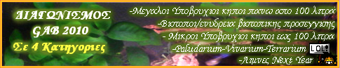 | Διαγωνισμός Ενυδρείων 2010 Διαγωνισμός Φυτεμένων και Βιοτοπικών Ενυδρείων. |