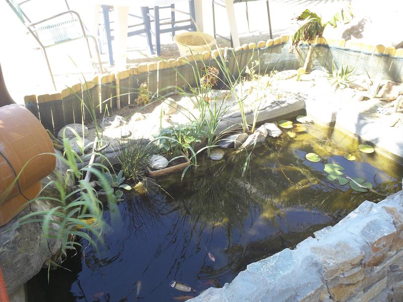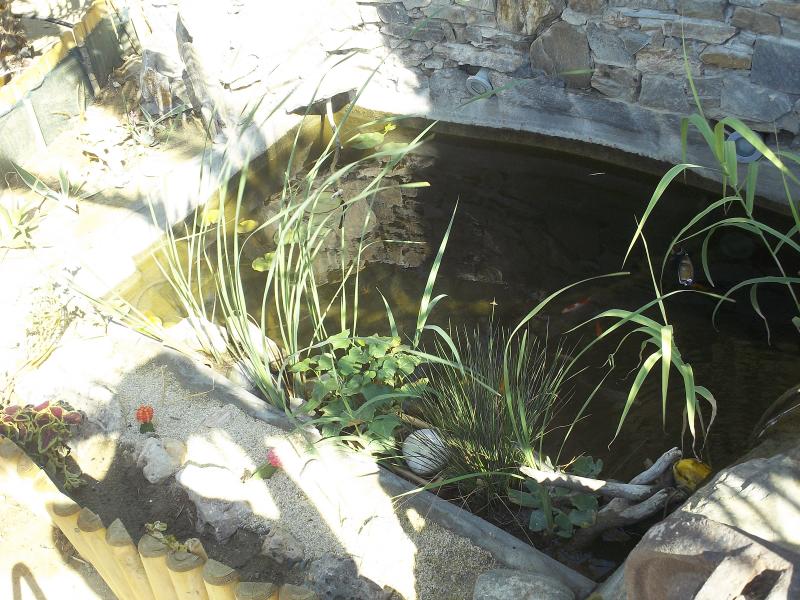 Η λιμνουλα αυτη κατασκευαστηκε για αλλο λογο και τελικα κατεληξε φυτωριο και με λιγα χρυσοψαρα μεσα παρα το γεγονος οτι ακομα δεν τελειωσε. Τωρα που τελειωσα την μεγαλη, θα δωσω βαση και σε αυτην...