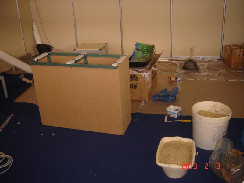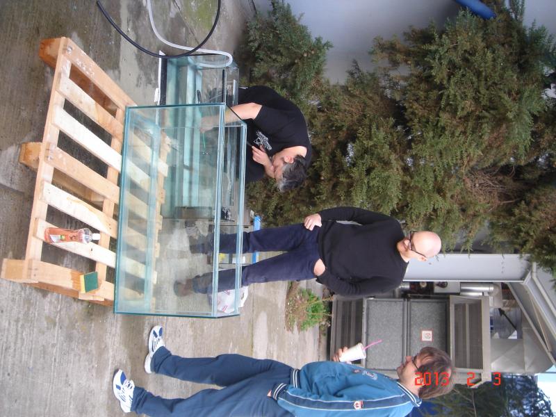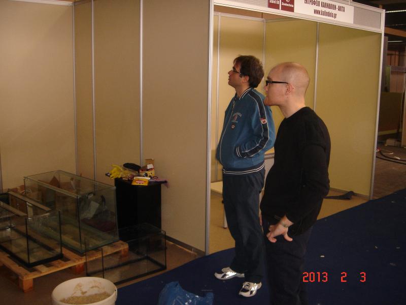 ------------------------- Σημερα περασαμε πολυ ωραια! Εγιναν πολλες δουλειες, γιατι με πολλα χερια ξεμπερδευουμε ευκολα και γρηγορα. Να ευχαριστησω το Μπαμπη (Bloskas), Νικο (narampa), Στεφανο (sarpijk) και την κοπελα του (Ελσα) για την πολυτιμη βοηθεια για να καθαρισουμε ολα τα ενυδρεια και την αμμο, οπως και να ντυσουμε και βαψουμε τις βασεις. Οι βασεις εγιναν πολυ ωραιες, με το μονταρισμα του snakepanos. Να ευχαριστησω επισης το narampa για το εσωτερικο φιλτρο και το θερμοστατη που προσφερε χθες, οπως και τον sarpijk για το εσωτερικο φιλτρο που εδωσε σημερα. Ε, καποιο απο αυτα θα κανει για τη μονομαχιερα! Guest Star ο Κλεοβουλος, που περα απο το ΤΣΙΠΟΥΡΟ και τα ΛΟΥΚΑΝΙΚΑ που εφερε, καθαρισε και ενα ενυδρειο Αυριο συνεχιζουμε με το τελικο στησιμο των ενυδρειων και τα τσιπουρα, οπως και τα λουκανικα που θα τα εχουμε ψημενα Για την ωρα που θα παμε, θα υπαρξει ποστ αργοτερα.