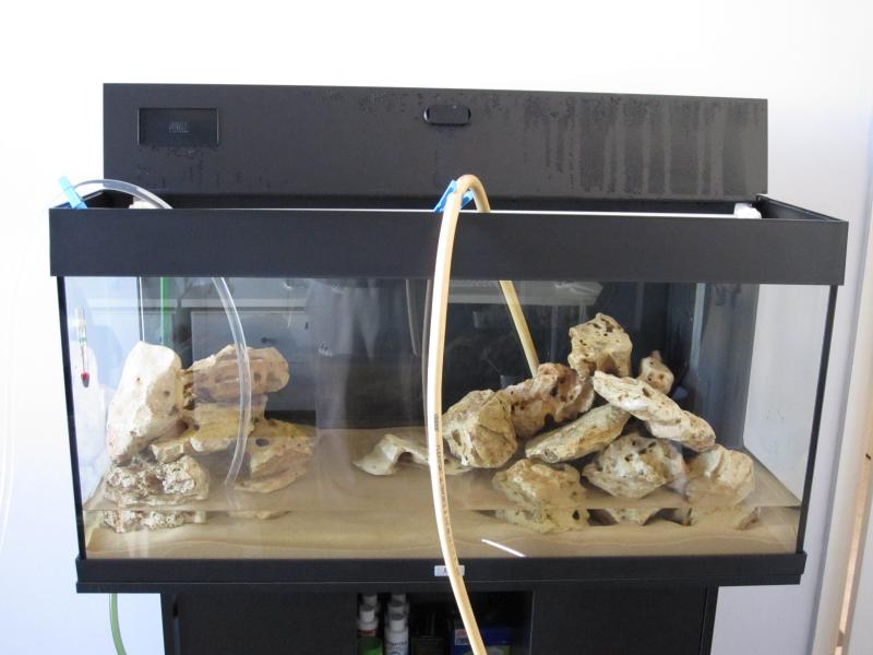 Εχουν γινει καποιες (τεχνολογικες αλλαγες) στο ενυδρειο. Εχει μπει eheim θερμαντικο 200watt στην μεση, εχει αλλαχτει η μια λαμπα με high lite color και εχουν μπει και juwel ανακλαστηρες.