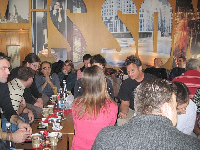 πανικός πάλι σήμερα...30+ άτομα κι ο ένας κυριολεκτικά πάνω στον άλλο (ο Bokosta-sun ξενύχτησε στο gab και δεν έκλεισε τραπέζι, γι αυτό βάλαμε τον Πανούλη που είναι ελαφρύς να κάθεται στην αγκαλιά του Πολλοί νέοι και παλιοί φίλοι (άσε που εμφανίστηκε τελικά και ο Χαραμάδας )Ευχαριστώ τον chemical mac για το φίλτρο (αν και το πλήρωσα λίγο ακριβά Ο "Ροκ Α Μπίλυ ο ζουμερός" ξεπούλησε ¶ντε και στην πίτα 100+ |