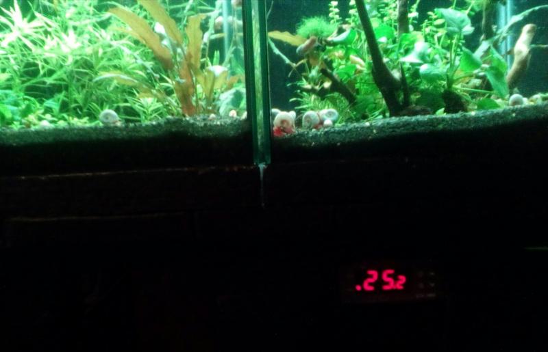 Καλο ειναι να αναφερουμε τη θερμοκρασια χωρου και τον τροπο ρυθμισης της θερμοκρασιας του ενυδρειου. -------------------------------------- Σημερα ηταν η πιο ζεστη μερα μεχρι τωρα για την περιοχη μου. 33.6C στο "fishroom" χωρις airco 500αρι (κιχλιδες, τετρας, γατοψαρα) : 27.0 - 27.2C, με 4 ανεμιστηρια 120mm, (πολυ δυνατα, 110cfm ροη αερα το καθενα) και ελεγχο με eliwell 140αρι (Fancy χρυσοψαρα): 25.0 - 25.3C με 4 ανεμιστηρια 80mm, (δυνατα, 37cfm ροη αερα το καθενα) και ελεγχο με stc-1000 50αρι (red cherry): 25.5-25.8, με 1 ανεμιστηρι 80mm, (δυνατo, 37cfm ροη αερα και μειωμενες στροφες με ρυθμιση στα 7.5V) και ελεγχο με stc-1000. Καθε μερα αναπληρωση με νερο απο ΑΟ για το 500αρι και το 50αρι και απο βρυση για το 140αρι (αφου ειναι μαλακο το νερο της βρυσης μου για χρυσοψαρα) Μεσος ορος αναπληρωσης μεχρι τωρα για την εξατμιση καθε μερα, 8 λιτρα για το 500αρι, 6 για το 140αρι, 3 για το 50αρι