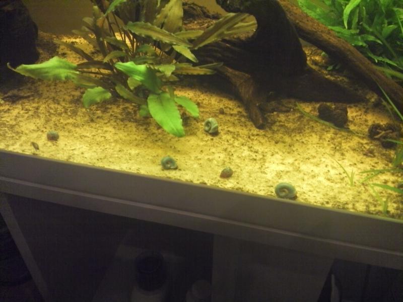 https://www.youtube.com/watch?v=-w332OXIxG0 Και για να προλαβω καποιον που μπορει να σκεφτει αρνητικα για καποια κομματακια τροφης που πεφτουν κατα το ταισμα μου στον βυθο, μετα ψαχνουν και τα ψαρια και τρωνε οσα βρισκουν καθως και τα σαλιγκαρια που απο αυτα δεν μενει πραγματικα τιποτα. Με το που πεσει τροφη, πανε εκει που επεσε λες και τη μυριζουν και τα καθαριζουν ολα. Εντυπωση μου εχει κανει το ποσο αμεσα πανε στα σημεια που εχει τροφη. Παλαιοτερα, αν μου φευγανε 2-3 φυλλαρακια λιγο πιο μεγαλα απο την τσιμπηδα, αμεσως τα επιανα παλι απο τον βυθο για να μην εχουμε κανα θεμα. Τωρα με τα σαλιγκαρια., εχω βρει την υγεια μου που λενε. Και το μεσημερι που ταισα παλι, εφυγαν 2-3 κολλημενα φυλλα σχετικα μεγαλα και εκατσαν κατω απο την κρυπτοκορινα στο κεντρο. Μετα απο λιγο 2 μεγαλα σαλιγκαρια και κανα μικρο ηταν εκει και την τρωγανε. Μετα απο λιγο δεν υπηρχε τιποτα. Και για του λογου το αληθες, εδω και 2 φωτο τωρα που εχουν μαζευτει αρκετα κατω απο εκει που ταισα και επεσε λιγη τροφη. Tωρα, πως πανε αμεσως, οπως ειπα και πιο πανω και πως καταλαβαινουν που εχει τροφη τοσο γρηγορα εντυπωση μου κανει.