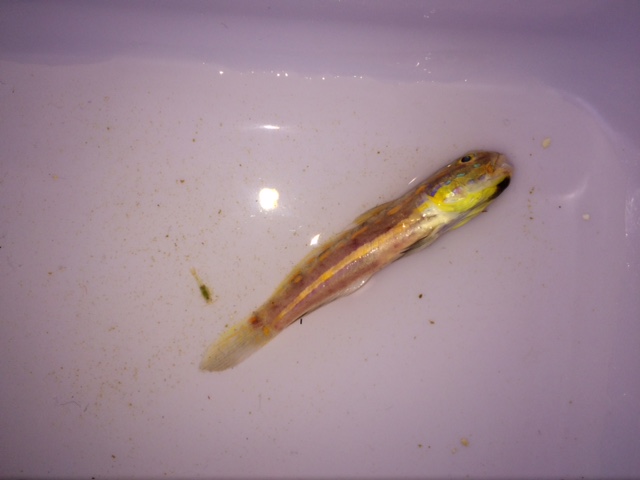 Σημερα το πρωί βρήκα ανάποδα το κίτρινο wrasse με ενα κοκκινο σημάδι στα πλάγια ...