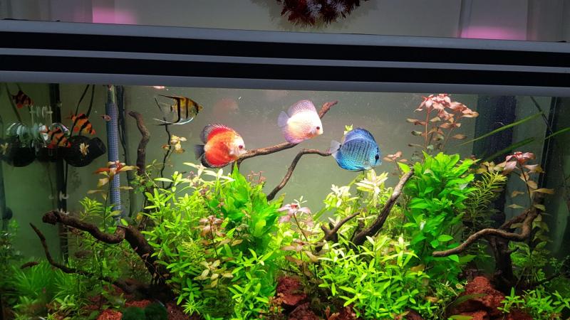 7 μήνες λειτουργίας 26 με 31 βαθμοί Κελσίου 3 δίσκοι, 7 νέον τέτρα, 5 rasbora, 4 red nose tetra. τα άλλα ψάρια έχουν βγει. 29/9/18 μπήκαν οι δίσκοι στο ενυδρείο. φίλτρο ενυδρείου 1000 lt/h 2 κυκλοφορητές Αλλαγή νερού 40 λίτρα ανα βδομάδα μετρήσεις με υγρά τεστ ΡΗ 6 ΚΗ 3 GH 7 NO3 10 ΜΕ 15 ΝΟ2 0 ΝΗ3 0 Από φαγητό έχω φτιάξει μίγμα όπως το είδα στο φόρουμ. έβαλα λαχανικά, φλεϊκς, αρτέμια, bloodworms, γαρίδες μικρές αποξηραμένες, και κάτι τροφές σε κόκκους για δίσκους. Η αλήθεια είναι ότι οι δίσκοι μου έρχονται αμέσως κοντά μου, όταν πλησιάσω στο ενυδρείο για να τα ταΐσω, αλλά τρώνε πολύ μικρές ποσότητες. ίσα που τρώνε και μετά αδιαφορούν. |