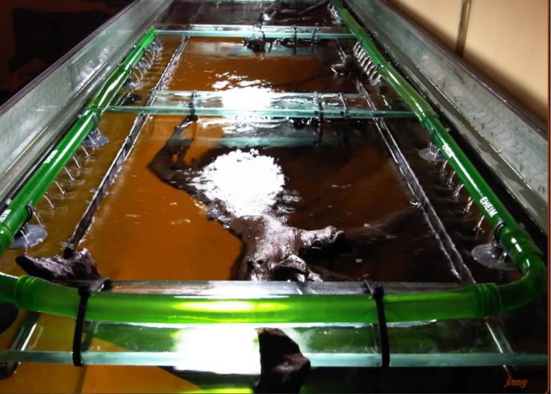 Η ροη της αντλιας με ικανοποιει απολυτα! Εφτιαξα ενα C με το βολικο σετακι της eheim και ετσι εχει ροη και ψηλα και μπροστα στο τζαμι και χαμηλα!!! Στην ουσια σπαει σε 3 κομματια απο 50cm το καθενα ... Ελπίζω να φαίνεται στη φωτο ...