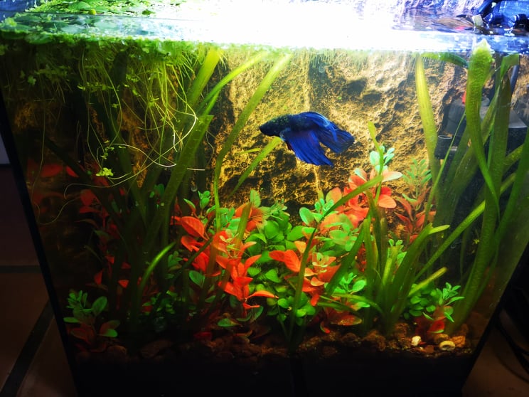 Όγκος: 22 λίτρα Κατηγορία: betta Φυτά: Valisneria - Φυτά επιφανείας Ψάρια / ¶λλα είδη: 1betta plakat - σαλιγκαρια(ramshorn) Διακοσμητικά υλικά: - Φόντο: Μαύρο Φωτισμός: 14 watt led ( e - bay ) Διάρκεια φωτισμού: 6 ώρες Φιλτράρισμα: εσωτερικό φίλτρο 200 l/h Θερμοστάτης: 50 w Υπόστρωμα : Walstad ( Χώμα - Χαλίκι μαύρο αψιδιανός) Παράμετροι: pH: 6.7 Γενική σκληρότητα (GH): - Ανθρακική σκληρότητα (ΚΗ): - Αμμωνία (ΝΗ3): 0 Νιτρώδη (ΝΟ2): 0 Νιτρικά (ΝΟ3): 10 Αλλαγές νερού: (Περίπου 5% ανά 7 ημέρες λόγω απώλειας κυρίως χωρίς όμως να έχει ανέβει ποτέ η NH3 ) Θερμοκρασία: 26 °C 3 μήνες τώρα, μηδενική συντήρηση |