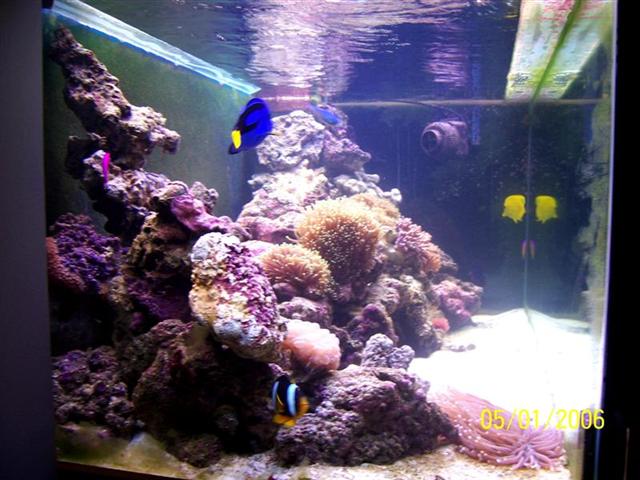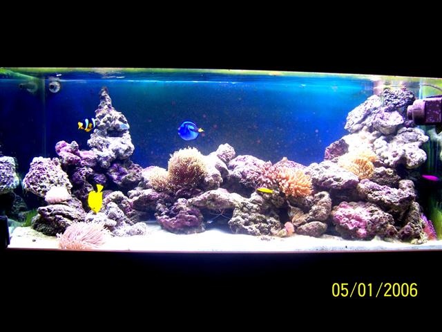 οσο για εξοπλισμο,οχι πολλα πραγματα.απλα ενα σκιμμερ ακουαμεντικ5000σορτι,ενα σαμπ με ανθρακα κ αντιφωσφορικα,οκτω σειρες τ5 λαμπες(5 λευκες κ 3 ακτινικες στα 505βατ ολα μαζι) κ απο κυκλοφορια ενα τουρμπελε αποδοσης 7000λ/ω κ 2500 λιτρα που βγαζει η αντλια που παιρνει το νερο πανω στο ενυδρειο απο το σαμπ.ειναι εχαιμ 1260. εχω επισης 105 κιλα βραχο κ 65 αρραγωνιτη. αυτα! |
