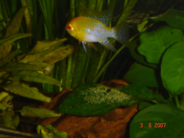 Όπως θα δείτε και στις φωτογραφίες, στο φύλλωμα μιας ανούμπιας το ζευγαράκι Ramirezi που έχω, έστησε σπιτικό, τουλάχιστον 100 αυγά ...