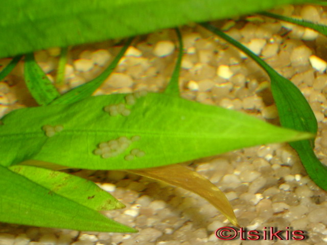 Το ενυδρείο τρέχει 2 μήνες. Τα 2 corry πρίν από 6 ημέρες γέμισαν το 52άρι με αυγά...(http://www.aquatek.gr/vb/showthread.php?t=17847) Απομακρύνθηκαν οι γονείς (πρίν 5 ημέρες) και τα μικρά μεγαλώνουν μια χαρα... Ομως........Πάλι??? Αυτά την έκαναν τη ζημιά???? Μέσα σε 6 ημέρες και σε νέο για αυτά ενυδρείο???? Αλλαγή νερού έκανα σήμερα...Δεν είχα πτώση θερμοκρασίας για να τα ωθήσω στην αναπαράγωγή!!! Αλλά και πάλι... Αυγά μόνο πάνω στο φύλλο του εχινόδορου..Πουθενά αλλόυ... Και τα αυγά δεν μου θυμίζουν να είναι από corry.. Εκτός και αν..... Το πρωί διέκρινα μια θυλικιά αρλεκίνο να μην αφήνει πρός την περιοχή που είδα τώρα τα αυγά να περάσει κανένας.... Τσαμπουκά πολύ και μάλιστα μου έκανε μεγάλη εντύπωση.. Tι να πω...Δεν ξέρω.... |