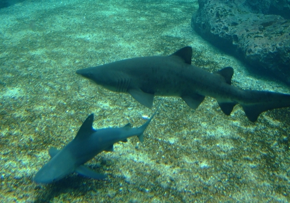 επειδή είχαν βάλει μεγάλους αριθμούς από κοπαδικά ψάρια (συναγρίδες για την ακρίβεια) αυτές επιτίθονταν συνέχεια στους καρχαρίες ... (για αυτό και τα σημάδια στον έναν από αυτούς...) οπότε ανέλαβε ένας ψαροντουφεκάς που ελάφρυνε αρκετά το κοπάδι και έτσι βρήκαν ισορροπία ... σίγουρα θα τρώνε το κάτι της ... στα υπόγεια όμως έχουν τεράστιες δεξαμενές με εφεδρείες ...οπότε .. αναπληρώνουν |