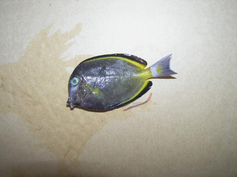 Παρατηρήστε στη ράχη του ψαριού κάτι σαν ξασπρίσματα τα οποία τα είχα δει και τα είχε κι εν ζωή μετά τη μεταφορά του στο 400άρι. Σκόρδο ναι είχα δώσει το υγρό της seachem δύο φορές με τη τροφή τους. Το νερό της εξάτμισης το συμπλήρωνα καθημερινά απλά αλλαγή νερού δεν έχω κάνει ακόμα λόγω του ich αλλά και το ενυδρείο τρέχει λιγότερο από μήνα. Αραγωνίτη έβαλα μισό παλιό μισό νέο κι αυτό γιατί φοβήθηκα την ανακατωσούρα που θα γινόταν στο παλιό ενυδρείο αν έπαιρνα μεγάλη ποσότητα. Τα ψάρια τα είχα ακόμα εκεί ενώ είχα πάρει φίλτρα, σκίμερ κομμάτια βράχου και τα έστηνα. Δεν μπορούσα να υπολογίσω το χρόνο που θα μου έπαιρνε η μεταφορά των υπολοίπων πριν βάλω τα ψάρια. Βέβαια τον υπόλοιπο αραγωνίτη τον έχω κρατήσει σε ένα μικρό ενυδρείο με κυκλοφοριτή και λέω να προσθέσω ακόμα λίγο. Ψάρια σίγουρα δε θα βάλω άλλα για αρκετό διάστημα... Θα παραμείνω με τα κλοουνάκια, τα chromis, το blue tang (αν τη βγάλει), και τις γαριδούλες. Φυσικά το scobas θα βγει με κάθε τρόπο και θα φύγει κακήν κακώς για άλλες πολιτείες.