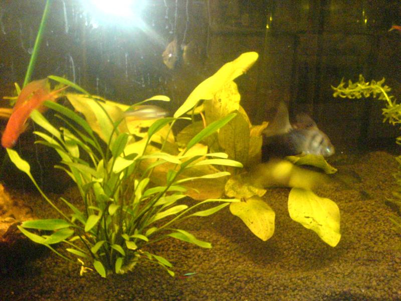 το προβλημα:το εχω γεμισει με ευκολα φυτα ανουμπιες και διαφορα αλλα,δεν ξερω ονομασιες αλλα ειναι ευκολα τα φυτα εκτος απο γρασιδι που κακως εβαλα...(θελω να το κανω φουλφυτεμενο) δεν εχω CO2 και προς το παρον δεν βαζω λιπασμα καθολου εκτος απο καποιες ταμπλετες για αυτα που τρεφοντε απο την ριζα. λαμπες εχω 2 γρολουξ 15w kai 30w και daylight philips 15w 30w. τα φυτα ειναι ολα καπως πεσμενα γενικα. ενα φυτο εχει ξεραθει το μισο και γενικα δεν βλεπω αναπτυξη καθολου εδω και μια βδομαδα που τα εχω και βλεπω καθε μερα 2-3 φυλλα στην επιφανεια και γενικα φαγομενα φυλλα.... και μια ανουμπια που ειχα απο οταν εστρωνα το ενυδρειο και μεγαλωνε αβερτα(ηταν το μονο φυτο που ειχα)τωρα αρχιζουν και φαγωνοντε στις ακρες τα φυλλα..επισης δεν εχω βαλει υποστρωμα εχω το απλο χαλικι. καποιες φωτο για να παρετε μια γευση... απο co2 θα μπει μετα τον σεπτεμβρη,λαμπα λεω να βαλω μια τ5 εχω χωρο γυρω στο 1.50 ποσα watt βγαινει για τ5? αλλα αυτο που με νοιαζει πιο πολυ,ειναι τι να κανω τωρα.... να βαλω καποιο λιπασμα?και ποιο? |