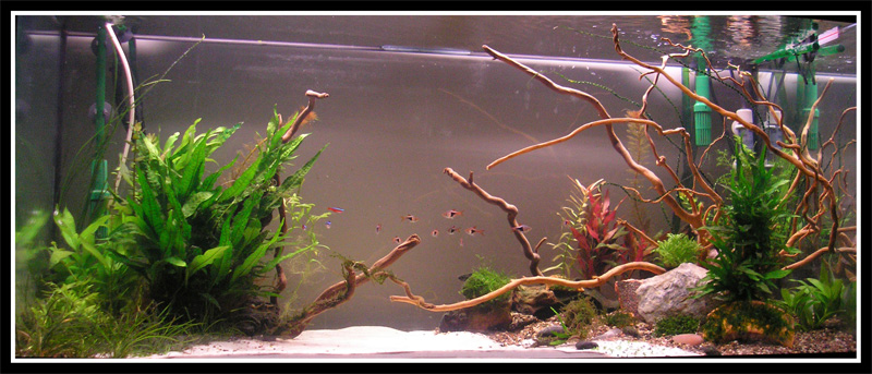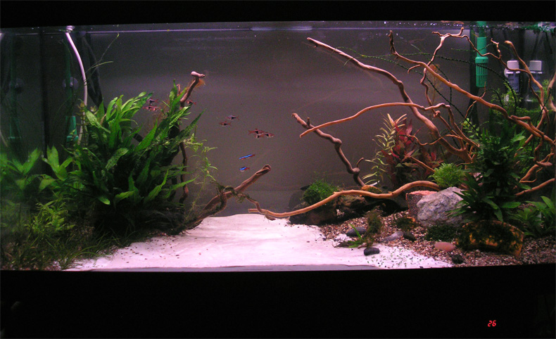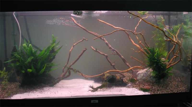 Και μαλιστα οπως ακριβως το ηθελα : ανοιχτο, με κρεμαστο φωτιστικο solarmax slim 4X54watt. To ενυδρειο αγοραστηκε απο αγγελια εδω στο forum και ευχαριστω τον Νικητα για την αψογη συννενοηση και τα extra δωρακια που μου εδωσε ως παρελκομενα.Οπως ειναι φυσικο αρχισαν αμεσως οι εργασιες και οι αγορες. Υποστρωμα εβαλα Seachem flurite και Ecco complete σε αναλογια 50/50. 20 κιλα χαλαζιακο χαλικι και 10 κιλα λευκη αμμο συμπληρωσαν 5-8εκ υψος βασης. Ξυλα δικης μου συλλογης απο την φυση ΑΛΛΑ δεν θα βαλω ψαρια αν δεν βεβαιωθω οτι ειναι ασφαλη. Θελοντας να μειωσω το ρισκο τα εβρασα, τα απολυμανα με διαλυμα χλωρινης, τα επλυνα καλα με αντιχλωριο και νερο και μετα τα τοποθετησα. Πετρες μη ασβεστολιθικες και λαβα δεν βρηκα πουθενα , δεν θελω να τις παρω απο Pet shop γιατι θα χρειαστω αρκετες και δεν ειμαι αμερικανακι να τις πληρωσω χρυσες. Ετσι προσωρινα για να φουνταρω τα ξυλα εβαλα αργιλωδεις αφου τις εβρασα και αυτες. Φιλτρο ενα Eheim ecco 2236 με σφουγγαρια,ενεργο ανθρακα και ενυδρειακο υαλοβαμβακα προς το παρον μετα θα γινει βιολογικο.Θα μπει και 2ο στρωμενο 2215 απο το 80αρι που θα ξεστηθει, και αυτο θα γινει μηχανικο. Θερμανση στους 26 βαθμους με elliwell και 2 θερμαντικα σωματα. Παροχη CΟ2 απο 3λιτρη φιαλη. PH controller αργοτερα.. Τα φυτα που εχω για να "παιξω" ειναι: Anubias coffeefolia και afzelli Flame moss και Fontinalis antipyretica Java fern Vallisneria nana hygrophila 3 ειδη Alternanthera lilacina Rotala nanjenshan Ludwigia repens Rotala rotundifolia Bacopa australis Cryptocorine becketti Glossostigma elatinoides Echinodorus tenellus Eπισης νεες αγορες τα : Pogostemon helferi Riccardia chamaedryfolia Pelia (Lomariopsis lineata ) Myriophyllum matogrossensis Ceratopteris cornuta Φυσικα δεν θα μπουν ολα αυτα. Θα γινει μακροχρονια επιλογη αν και τι θα μπει και που.. Την Riccardia την πληρωσα 12 ευρω για ποσοτητα οσο ενα σπιρτοκουτο αλλα ειναι πανεμορφο φυτο ! Μια πρωτη γευση λοιπον αν και θα αλλαξει σιγουρα μεχρι να μου "κατσει" το aquascape. |
