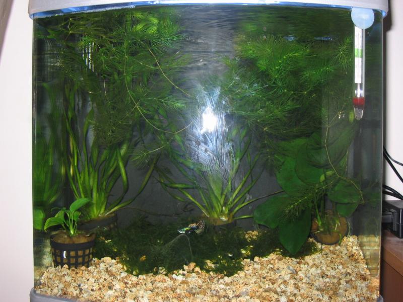 Αν και είναι μικρό το ενυδρείο, θα μπορούσες να βάλεις καμιά μικρή πέτρα ή ένα μικρό κομμάτι ξύλο. Θα δείξει πιο όμοφο. Αν σου αρέσει βέβαια και θέλεις!