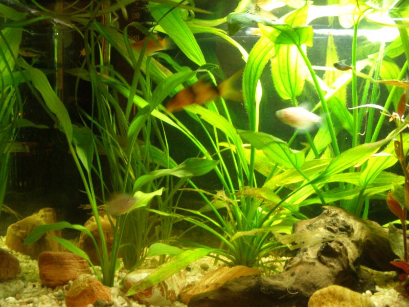 Πληροφορίες Διαστάσεις:60x30x35 Όγκος:60 λιτρα Κατηγορία:φυτεμενο Φυτά:2 echinodorus και αλλα τεσσερα που δε θυμαμαι Ψάρια / Άλλα είδη:4 μπαλουν, 1 γλυφτη, 1 κλοουν, 1 ροζ ψαρακι?, 3 νεον και 12 μωρα μπαλουν Διακοσμητικά υλικά:χαλικι και ξυλο (χαλίκι, ξύλα κ.λ.π.) Φόντο:αφισα Φωτισμός:το εχει το ενυδρειο Διάρκεια φωτισμού:6 ωρες την ημερα Φιλτράρισμα:του ενυδρειου Θερμοστάτης:υπαρχει δεν θυμαμαι πως λεγεται Λίπανση:jbl ferropol 8ml/3 φορες το μηνα, jbl denitrol 2ml/3 φορες το μηνα, flourish excel μισο καπακι μερα παρα μερα jbl biotopol plus water conditioner 4ml/3 φορες το μηνα επισης jbl atvitol βιταμινες για τα ψαρια 6 σταγονες την ημερα Παροχή CO2: Παράμετροι: pH:7,6 Γενική σκληρότητα (GH):14 Ανθρακική σκληρότητα (ΚΗ):6 Αμμωνία (ΝΗ3):δεν εχω Νιτρώδη (ΝΟ2):0 Νιτρικά (ΝΟ3):25 Αλλαγές νερού:3 φορες το μηνα 30% Θερμοκρασία:25 Άλλες πληροφορίες:οι μετρησεις γινονται με stick Φωτογραφία: |