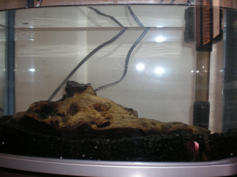 Προσπάθησε να παίξεις με το ξύλο, ώστε να μην είναι ακριβώς πίτα στο χαλίκι. ¶λλαξε του θέση ώστε να υψωθεί στο ενυδρείο. Με την τοποθέτηση αργότερα της ανούμπιας και το δέσημό της σε διάφορα ύψη στο ξύλο, θα δημιουργηθεί εσσωτερικό φόντο που θα καλύπτει μεγάλο μέρος της πίσω πλευράς του ενυδρείου. Οπτικά θα είναι καλύτερο.