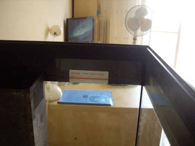 εαν γινει η τρυπα για υπερχιλιση κατω απο το μαυρο πλαισο θα φαινεται η σταθμη του νερου! επομενως δεν πρεπει να γινει στο μαυρο πλαισιο? απο την αλλη οπως βλεπετε στη φωτο απο εκει που ξεκιναει το μαυρο πλαισιο μεχρι τη γραμμη νερου που δινει η juwel ειναι 1 εκ μολις!!! και ετσι θα χρειαστει να κοπει και το μαρο πλαστικο !!! τι κανουμε? |