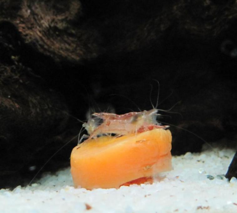 Από την αλλαγή του aquascape ανακάλυψα απογόνους από τις γαρίδες (10 τον αριθμό) που είχα βάλει πρίν από μήνες στο ενυδρείο και έκτοτε δεν τις ξαναείδα. Με τα φυτά που περίσεψαν έστησα ένα 25λιτρο και τις έβαλα μέσα. Όσες τουλάχιστον μπόρεσα να παγιδεύσω γιατί ήταν πολύ ψιλές. Μία εβδομάδα μετά, έπιασα κάποιες από αυτές στα πράσα ή μάλλον στα καρότα...