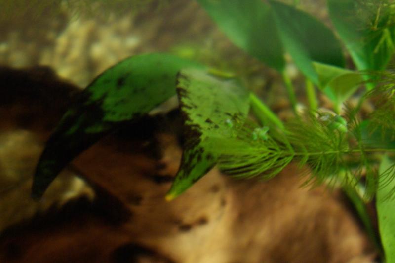 Έχω δυο ανουμπιες στις οποίες εδώ και λίγο καιρό σε κάποια φύλλα εμφανίστηκαν μαύρα στίγματα. Λέω κάποια γιατί τα περισσότερα είναι σε καλή κατάσταση. Τα φύλλα αυτά στο προηγούμενο ενυδρείο μου ήταν ακριβώς κάτω από το φωτιστικό και αρκετά ψηλά.
