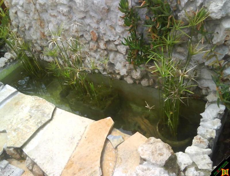 Ότι μπορεί κάνει ο καθένας μας. ¶λλος μπορεί μεγάλη λίμνη, άλλος μικρή, άλλος μεγάλα ενυδρεία κτλ το θέμα είναι να μπορέσει κάποιος κάποια στιγμή να κάνει αυτό που πραγματικά θέλει. FOTO 1 Βάζω μονό και μονό για να δείτε ποια ήταν η ανάπτυξη των φυτών του κύπερου και του κισσού των Οκτώβριο –Νοέμβριο του 2008 Μια και η αναπτύξει τους μετά από ένα χρόνο θεωρώ ότι έχει ξεφύγει. Κάτι που θα δείτε αργότερα FOTO 2-7 Έχουν να κάνουν με μια χτιστή κατασκευή από πέτρα. Η σκοπιμότητα της κατασκευές είναι : > Να προσφέρει ένα είδος μονίμου καθίσματος διπλά στην λίμνη. > Θα υπάρχει βρύση (έχει μεταφερθεί από άλλο σημείο) > Δημιουργία ενός ακόμα παρτεριού για λουλούδια. > Δημιουργία ενός κιτίου ώστε να κρύβονται πολύμπριζα καλώδια κτλ. > Γέμισμα της λίμνης με νερο από σωλήνα που είναι εντοιχισμένος μεσα στην κατασκευή FOTO 8 Μια πανοραμική φωτογραφία. Σε αυτό το στάδιο σταμάτησαν οι εργασίες για το 2008 FOTO 9 Χειμώνας 3/1/2009