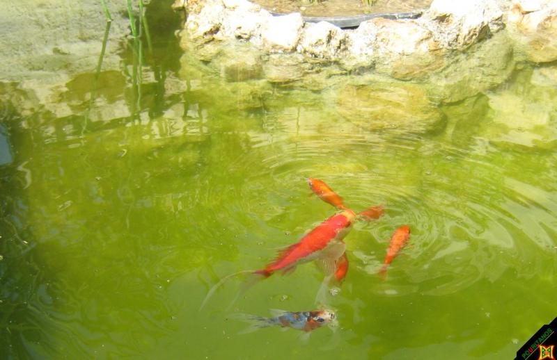 9 χρυσόψαρα στην μεγάλη λίμνη 2 χρυσόψαρα στην προλιμνη ---------------------------------- 2 ρίζες νούφαρο . Μέσα σε μια πολυυυυ μεγάλη γλάστρα. Η γλάστρα είναι τοποθετημένη μέσα σε τρυπά. ώστε να μην υπάρξει πρόβλημα να πέσει ποτέ. αλλά και να μην φαίνεται ----------------------------------- 4 φυτά Κύπερος φυτεμένα σε ένα σημείο διαμορφωμένο με 10cm(ύψος) χώμα και καταλαμβάνει μια γωνιά τις λίμνης. σκοπός του κυπέλου είναι οι ρίζες του να βγουν έξω από το χώμα ώστε να γίνει μια μικρή ζούγκλα. ώστε προσφέρει: A. Σκιά. B. Βοσκοτόπι μικροοργανισμών. Γ. Κρυψώνα σε γόνους Δ. Σημείο τοποθετήσεις αυγών. Ε. Απορρόφηση νιτρικών, έως ένα βαθμό. ( Το θέλει το φιλτρακη τις η λίμνη.) ----------------------------------- Η λίμνη έχει βάθος πάνω από 1 μέτρο. Απλά είναι χωρισμένη σε 2 επίπεδα ώστε να προσφέρει μεγαλύτερη ασφάλεια κρατώντας το επίπεδο 1 σε μικρό βάθος για μεγαλύτερη ασφάλεια. Υπάρχει μια μεγάλη είσοδο που επιτρέπει άνετα την κυκλοφορία των ψαριών στα 2 επίπεδα. (χωράνε και πολύ μεγάλα κοι να περάσουν). ----------------------------------- Ρευμα δεν υπάρχει ακόμα. Οπότε τρέχει χωρίς κυκλοφορία νερού. Ρευμα- κιόσκι- φυτά για τα παρτέρια, από του χρόνου. αυτά προς το παρών. ΟΡΙΣΤΕ και οι fotos σας.