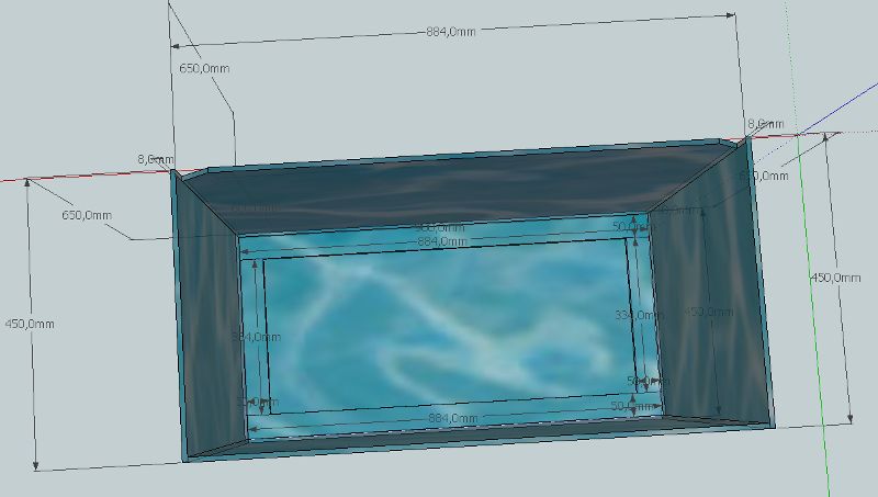 1) χρειάζεται κόντρες οροφής? και αν ναι που? Διαστάσεις τζαμιών: Βάση 90χ45χ1cm Μπρος-Πίσω 88,4χ65χ0,8cm Πλάγια 45χ65χ0,8cm Κόντρες Βάσης 2χ 88,4χ5χ1cm και 2χ 33,4χ5χ1cm το σχέδιο είναι δικό μου... το πάχος που διάλεξα ειναι καλό? 2) Επίσης για καπάκι τί προτείνετε? και απο υλικά αλλά και απο λάμπες, για φυτεμμένο πάει... (καθαρό 226 lt μετρημένο) 3) το ξέχασα αλλα θα μου έρθει.... ΥΓ.Το θυμήθηκα, αν το μεγαλώσω σε ύψος... τι αλλάζει στις παραμέτρους που έχω δώσει παραπάνω? σκεφτόμουν ιδανικά για 80cm ύψος. |