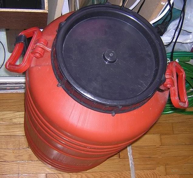 Δηλαδή συνδέω το λάστιχο στην αντλία, κλείνω το βρυσάκι, την βάζω στην μπρίζα, το πάω στο σαλόνι και ανοίγω το βρυσάκι... Οταν τελειώσω κάνω ακριβώς την διαδικασία ανάποδα. Ετσι ουτε σταγόνα ούτε ζημιά... Λεπτομέρειες: Το αντιχλώριο το ρίχνω στο βαρέλι λίγα λεπτά πριν την αλλαγή! Οταν γεμίσει το ενυδρείο πρώτα κλεινω το βρυσάκι και μετά βγάζω την αντλία από την μπρίζα, γιατί αλλιώς αν το λάστιχο είναι μέσα στο ενυδρείο θα μου σιφωνάρει το νερό του ενυδρείου πίσω στο βαρέλι. Η δυνατότητα ανύψωσης (μανομετρικό) της αντλίας πρέπει να είναι σαφώς μεγαλύτερη από το μέγιστο ύψος του ενυδρείου, γιατι όσο το ύψος ανεβαίνει τόσο μειώνεται και ροή του νερού (lt/h) που βγάζει. Το δικό μου ενυδρείο είναι σε ύψος 85cm. Εδώ πιστεύω οτι και υπερβολή να γίνει στην αγορά αντλίας, δεν πειράζει, γιατί αν αυτή δεν έχει ρύθμιση ροής, υπάρχει το βρυσάκι στο λάστιχο για να ρυθμίζουμε τη ροή του νερού που πέφτει στο ενυδρείο. Λίγο προσοχή χρειάζεται επίσης στην επιλογή της αντλίας και του λάστιχου ωστε αυτό να είναι στην κατάλληλη διάμετρο που να μπαίνει στο στόμιο εξόδου της αντλίας (εγώ την πήρα μαζί μου και πήγα και αγόρασα λάστιχο για να το δοκιμάσω). Το βαρέλι: |