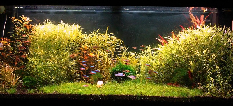 Διαστάσεις : 1.20 Χ 0.41Χ.55 Όγκος :240 λίτρα Κατηγορία :Φυτεμένο ενυδρείο κοινωνικό Φυτά : Echinodorus bleheri, Eleocharis parvula, Echinodorus Ozelot, microsorium pteropus, Anubias barteri nana, Anubias barteri, Lilaeopsis brasiliensis, Rotala sp. ''green'', Rotala rotundifolia , Heteranthera zosterifolia, Nesaea crassicaulis Ψάρια / Άλλα είδη:6 ramirezi German blue, 4 ramirezi electric blue, 2 ramirezi gold, 2, angelfish, 20 Paracheirodon axelrodi (cardinal tetra), 5 red Rasbora, 6 corydoras sterbai, 2 apple snail Φόντο:Mαυρο χαρτονι ματ Φωτισμός: 1Χ54 watt ( dennerle amazon day ) διάρκεια 11 ώρες, 2 X54 watt T5 (dennerle Colour plus, dennerle special plant) διάκεια 7 ώρες Φιλτράρισμα: Εσωτερικό Φίλτρο juwel, εξωτερικό φίλτρο dolphin C-1300 Θερμοστάτης:300W juwel Λίπανση:2 ml iron, 5 ml potassium, 5 ml flourish εβδομαδιαία μετα από την αλλαγή νερού.Όλα της Seachem Παροχή CO2:΄Πλήρες σύστημα CO2 (150 Φυσ/λεπτό) Παράμετροι: pH:6,40- 7,00 Γενική σκληρότητα (GH):-Ανθρακική σκληρότητα (ΚΗ):3 Αμμωνία (ΝΗ3):0 Νιτρώδη (ΝΟ2):0 Νιτρικά (ΝΟ3):5-10 Φωσφορικα:0,5 Αλλαγές νερού:1 φορα την εβδομαδα 50 λίτρα Θερμοκρασία:26,5οC Άλλες πληροφορίες:προετοιμασια νερού σε βαρέλι 60 λιτρων, το ενυδρείο τρέχει εδώ και 4 μήνες Φωτογραφία: |