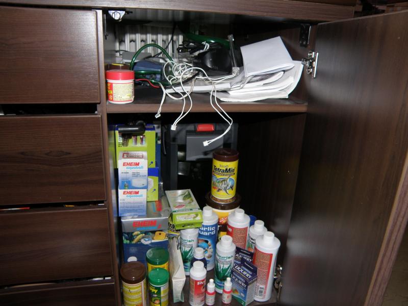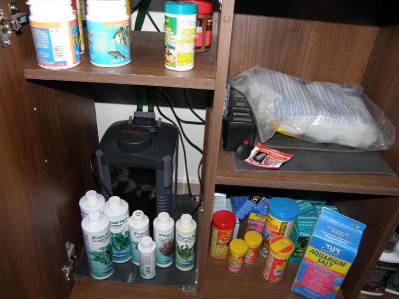 Εγω δεν έχω τιποτα ιδιαίτερο οσο αφορα τα φυτα. Ενα flouris, 1 phosphorus και τις nutriballs της Dennerle. Το υπολοιπο ντουλάπι περιέχει... απο κροκέτες σκύλου, μέχρι λάμπες! |