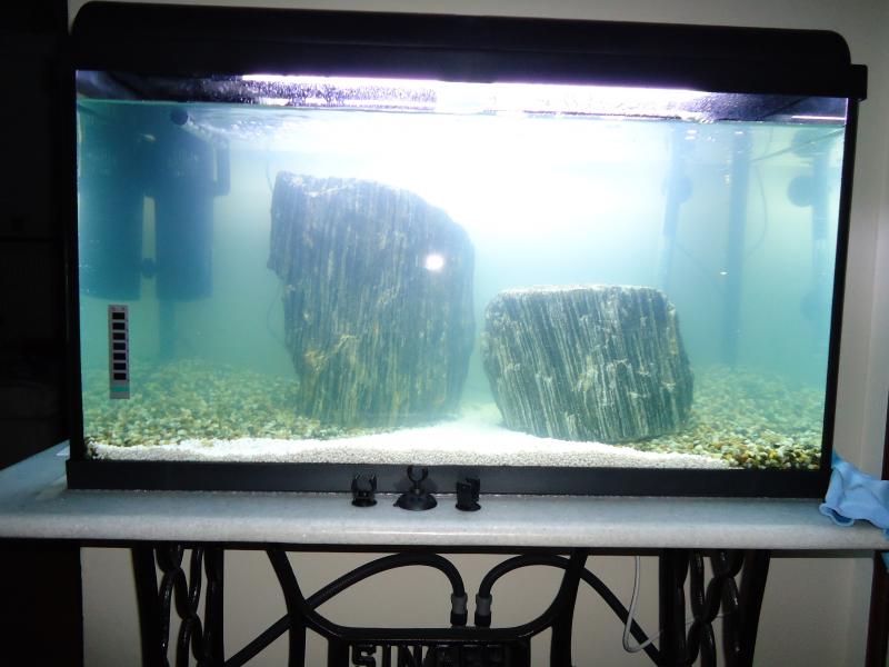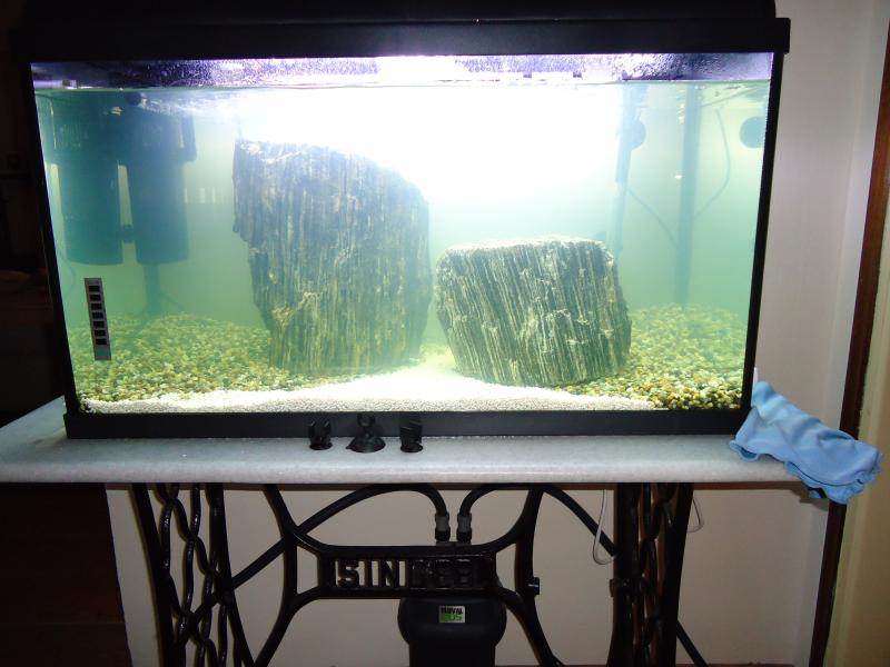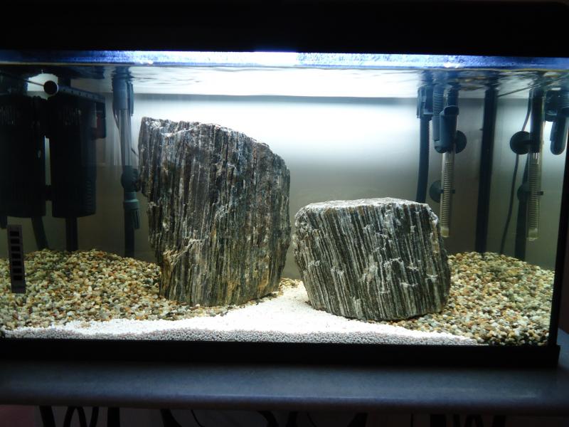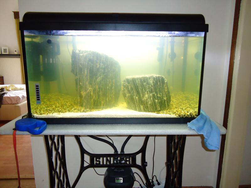 υποστρωμα της tetra complete sudstrate σε ποσοτητα 5 κιλα και 600 γραμ.7 κιλα χαλαζιακο χαλικη σε φυσικους χρωματησμους, πολλη καλα πλημενο και 3 κιλα ασπρο χαλικη μικροτερης διατωμης. το ενυδρειο εχει 2 λαμπες 10000 κ τ8 και το φιλτραρισμα γινεται με ενα εξωτερικο φιλτρο fluval 205 ενα εσωτερικο φιλτρο της resun -magi-700 με συνολικη ροη 1400 λιτρα νερου στην ωρα.η θερμανση γινετε με εναν θερμοστατη της resun 150 watt.και στο μελλων θα τοποθετησω στο εξωτερικo φιλτρο ενα εξωτερικο θερμοστατη της hydor 200 w. |
