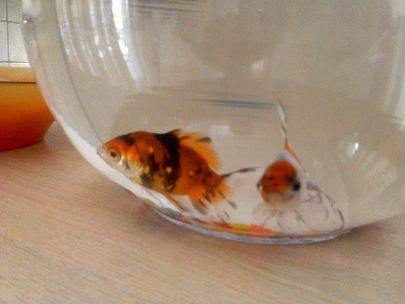Ξαφνικά χθες το βράδυ,γίναμε "ανάδοχοι γονείς" σε αυτά τα δύο ψαράκια.Τα έφεραν δώρο στην κόρη μου.