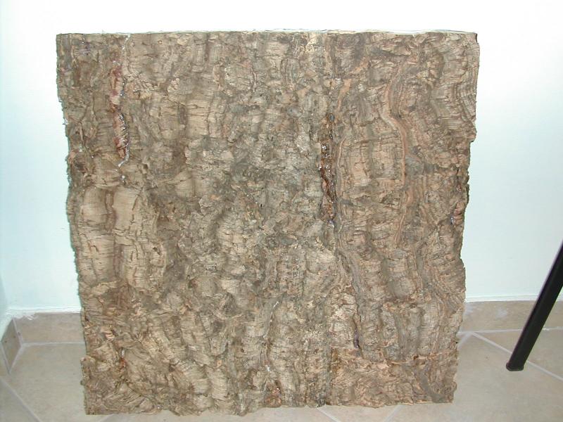 Αφου πειραματίστηκα με αρκετά υλικά (φελιζόλ, τσιμέντο, διάφορες πέτρες) το αποτέλεσμα είτε δε με κάλυπτε οπτικά, είτε δεν πληρούσε τα στάνταρ που είχα θέσει από την αρχή. Ετσι αποφάσισα να χρησιμοποιήσω ένα φυσικό υλικό που διαθέτει χαρακτηριστικά όπως ελαφρύ βάρος ελαστικότητα και αντοχή. Το υλικό αυτό είναι ο ακατέργαστος φελλός. Προχώρησα λοιπόν στην αγορά κομματιών για να καλύψω τις διαστάσεις της πλάτης του ενυδρείου μου 120 Χ 65. |