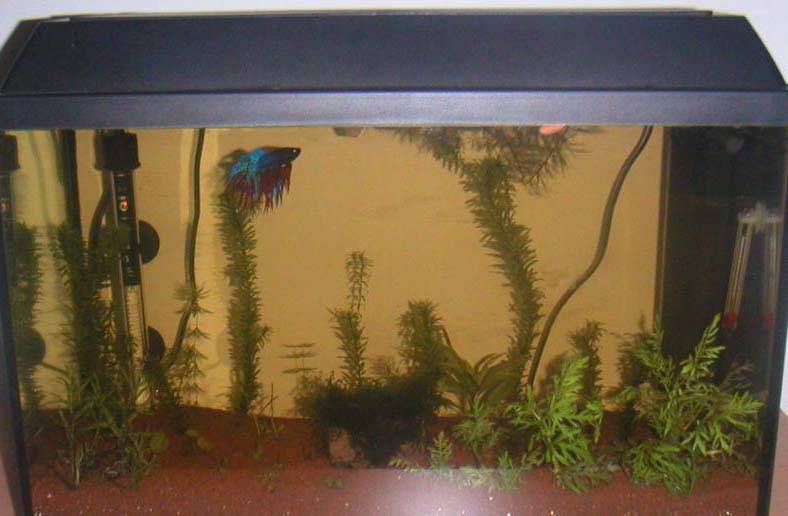 και μετά μεταφορά σε 30λίτρο με φίλτρο όπου είδα διαφορά στο ψάρι στην συμπεριφορά.όταν κάποιοι απο δώ μου λεγαν ότι σε 60λίτρα είναι και πάλι άλλο ψάρι στην αρχή ήμουν διστακτικός αλλά όταν το επιχείρησα και μάλιστα σε 72 είχαν Μεγάλο δίκιο και φυσικά ξέραν τι λέγανε. τους άκουσα και το είδα. μπορείς να το κάνεις φουλ φυτεμένο με πολλά φυτά επιφανείας μαζί με λίγο σκούρο νερό και θα δείς κάτι άλλο. το ενυδρείο όπως ήταν πριν απο 10 μέρες. τώρα και τα φυτά έχουν πάρει τα πάνω τους . |