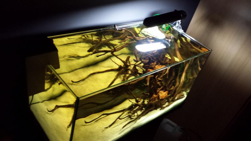 Δοκιμασε το φως τοποθετημενο στο κεντρο του ενυδρειου και βαλε και ενα εχινοδωρο ή/και καμια christmas moss πανω στα κλαδια.